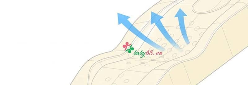 Sản phẩm cũng giúp tuần hoàn không khí với vật liệu cấu tạo lỗ thông khí có tính giãn nở cao giúp đào thải hiệu quả mồ hôi và thân nhiệt của trẻ.