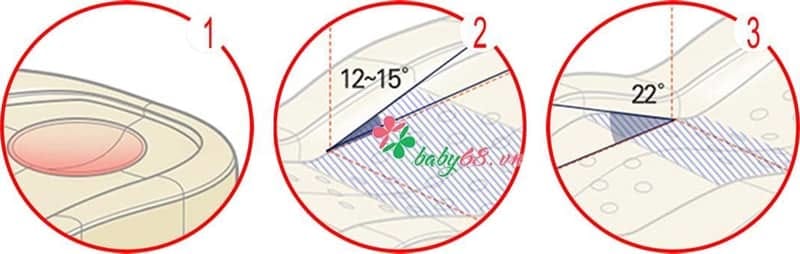 2. Thiết kế góc nghiêng 12-15 độ đặc biệt theo chuẩn khoa học: giúp hệ hô hấp bé tốt hơn, chống hiện trượng trào ngược sữa ở bé, ngăn ngừa hội chứng đột tử ở bé.
