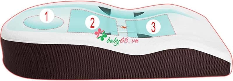 Phần chính giữa gối có độ lõm, giúp bảo vệ đầu bé khỏi méo, bẹp một cách tối đa nhất.