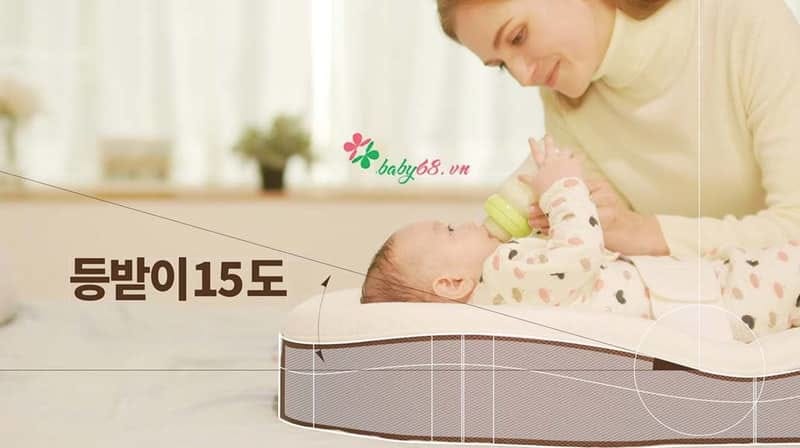 Đệm Coza đươc thiết kế với góc nghiêng 15 độ – giúp bé chống trào ngược dạ dày sau khi bú sữa xong