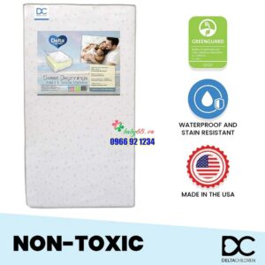 - KHÔNG ĐỘC HẠI: Nệm không chứa thêm chất chống cháy độc hại, chì và phthalates. Đã được thử nghiệm và đáp ứng các tiêu chuẩn thử nghiệm an toàn JPMA, CPSIA và ASTM hiện hành. Chất chống cháy 100% cotton đáp ứng tiêu chuẩn chống cháy.