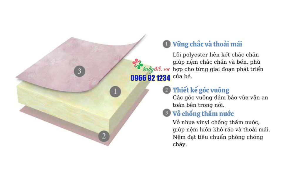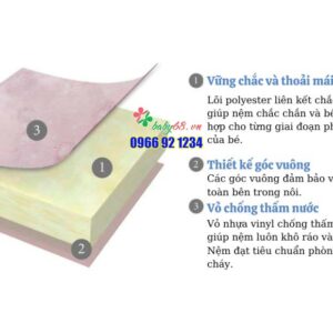 - CHỐNG THẤM NƯỚC & GIẢM DỊ ỨNG: Vỏ vinyl bền, chống thấm nước, dễ lau chùi và không gây dị ứng. Cả hai mặt của nệm đều có lớp vỏ chống thấm nước nên có thể lật nệm thoải mái.