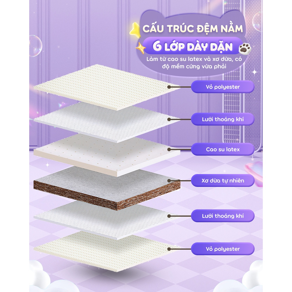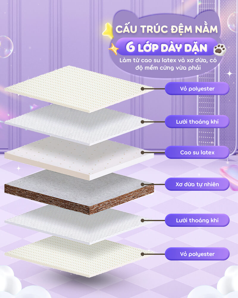 - Cấu trúc đệm 6 lớp dày dặn