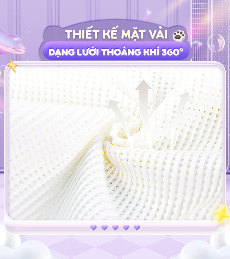- Thiết kế mặt vải đệm dạng lưới thoáng khí 360°