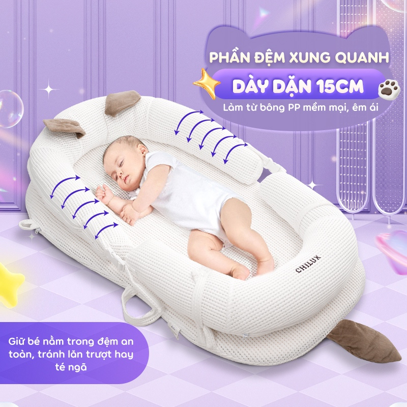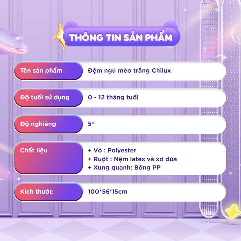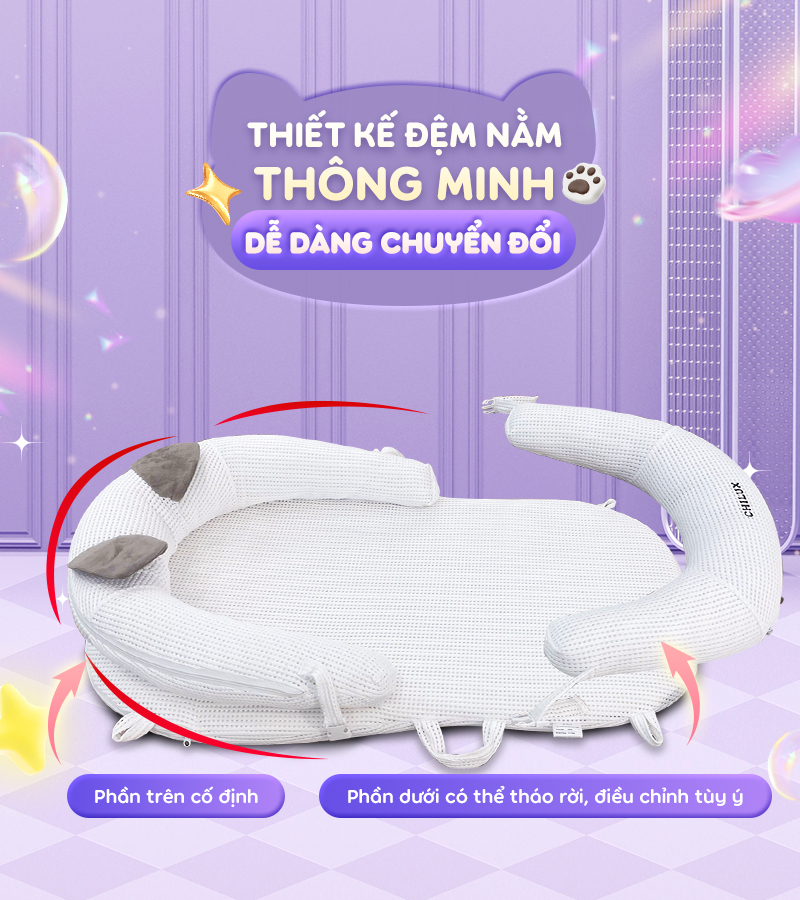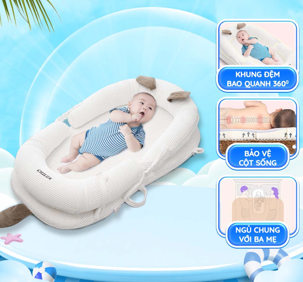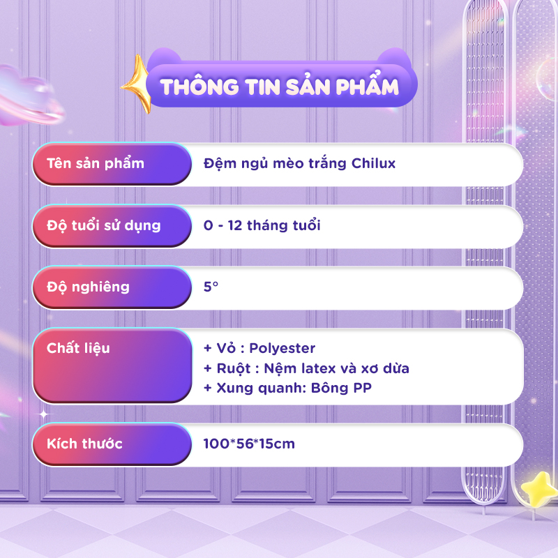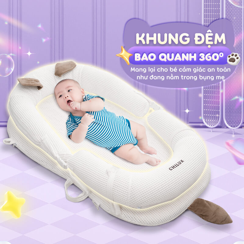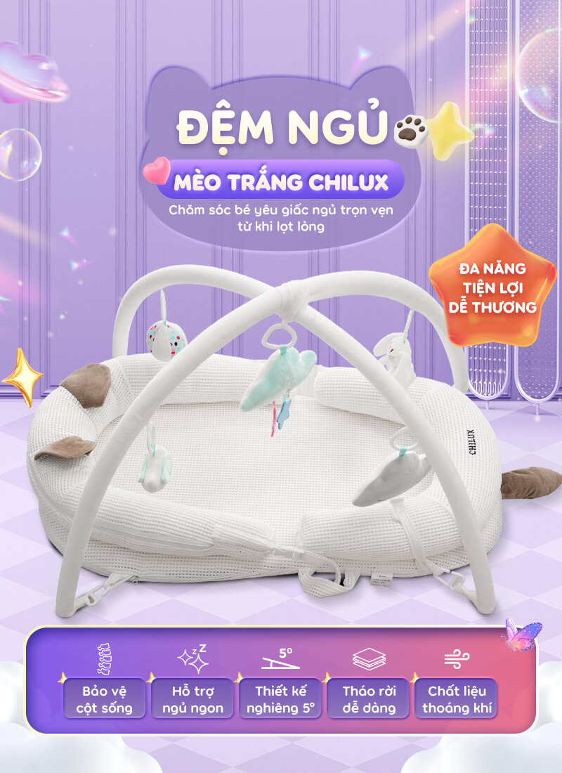 Đệm ngủ mèo trắng Chilux – Định hình tư thế nằm khoa học, hỗ trợ bé ngủ ngon