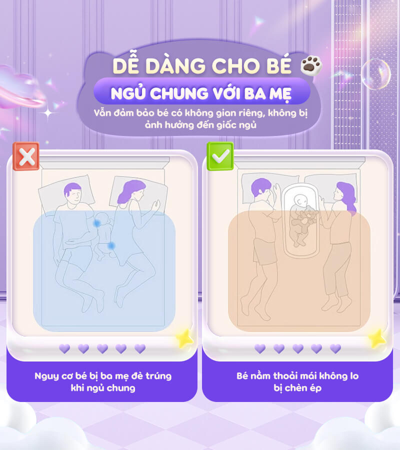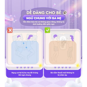 - Phần đệm xung quanh dày 15cm tránh lăn trượt hay té ngã khi bé nằm