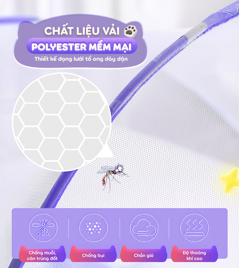 - Mùng chống muỗi cao vừa vặn với đệm nằm