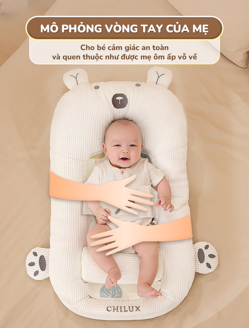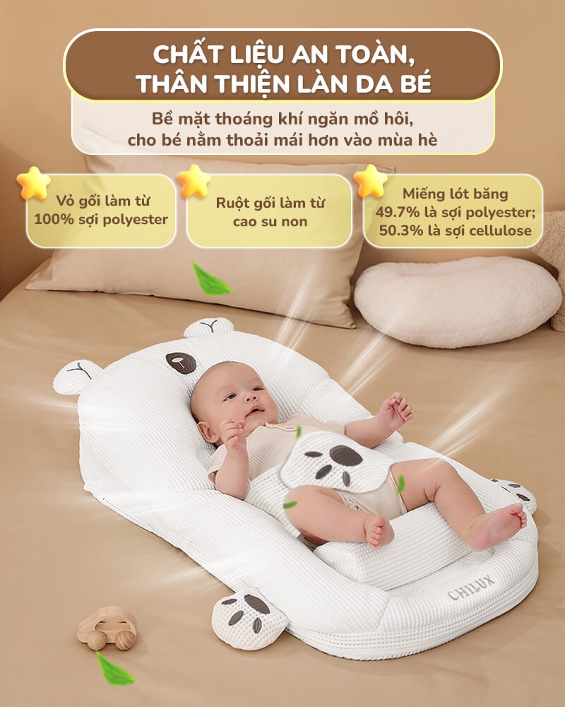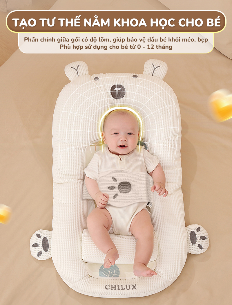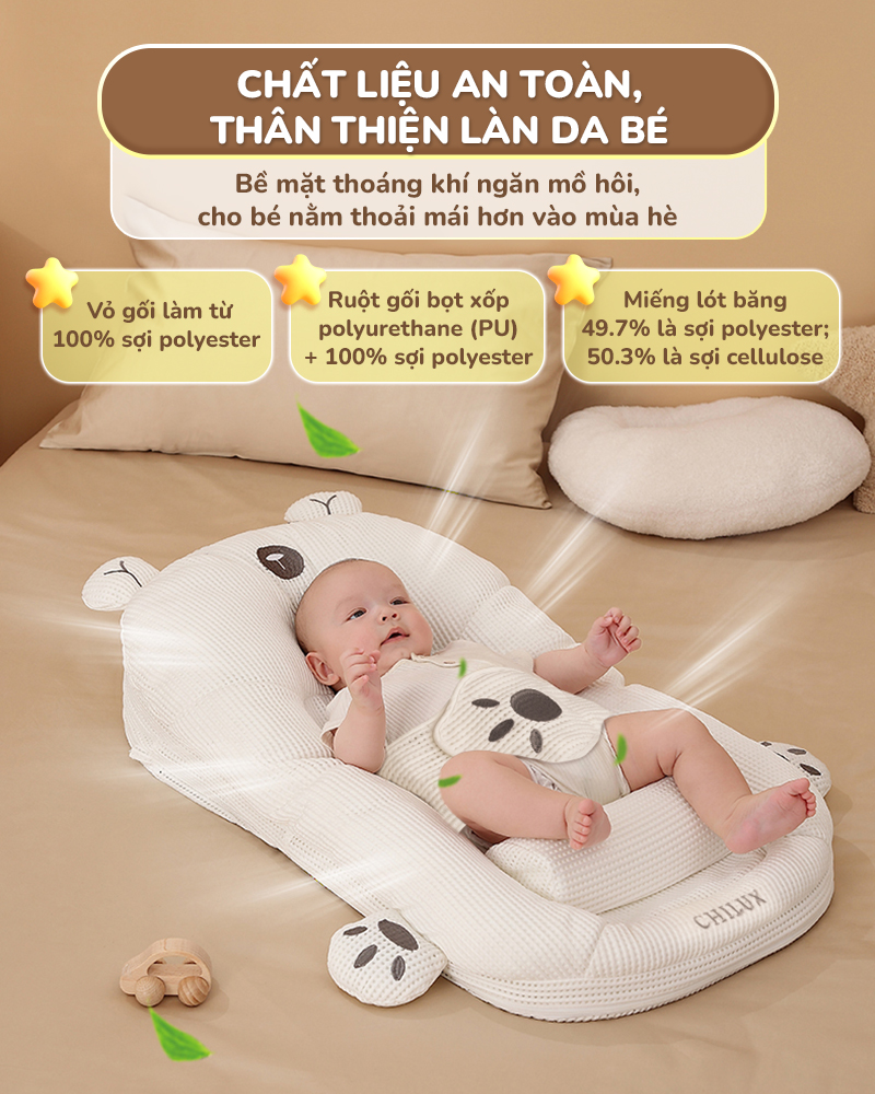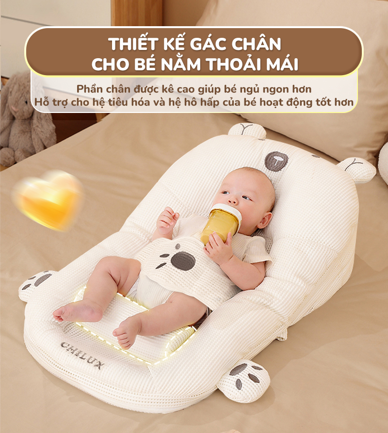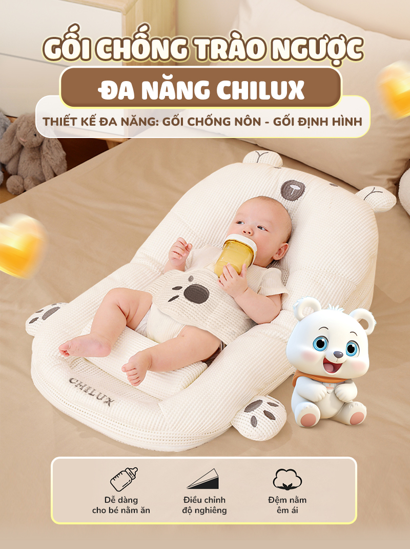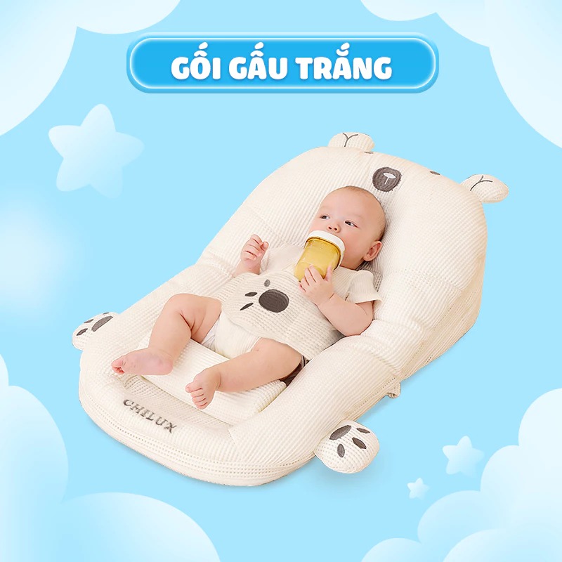 Đệm gối chống trào ngược gấu trắng Chilux – Thiết kế đa năng chống nôn, gối định hình, giường ngủ cho bé