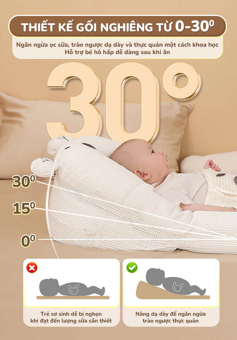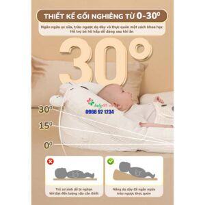 Thiết kế gối nghiêng từ 0 – 30 độ, ngăn ngừa ọc sữa, trào ngược dạ dày và thực quản