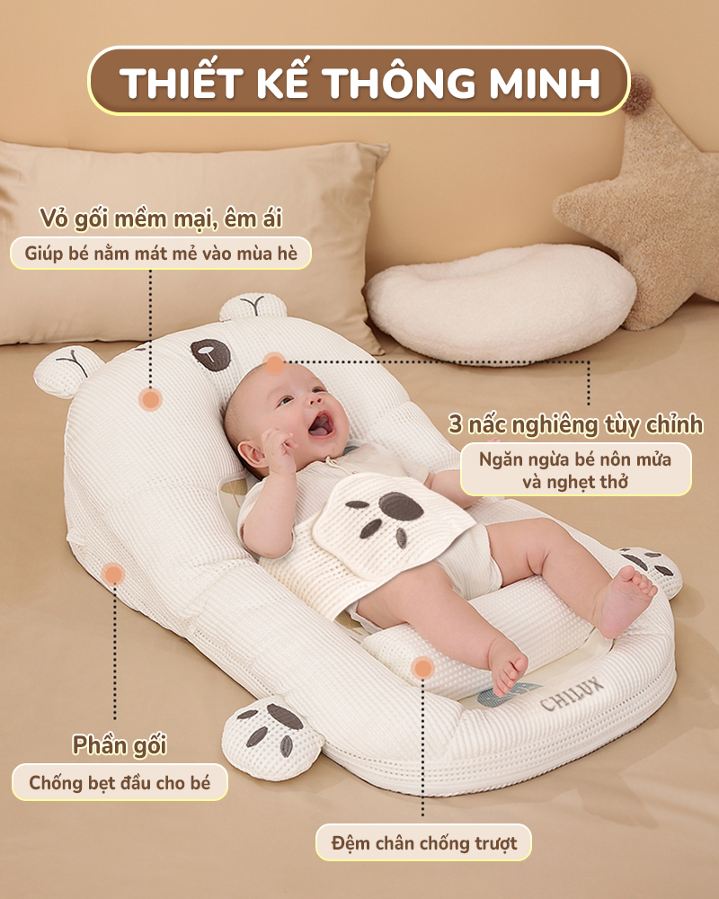 Gối Chống Trào Ngược Chilux dùng cho bé từ 0-12 tháng với nhiều lợi ích vượt trội: