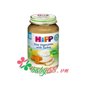 Sản phẩm gồm rau sạch 30% (gồm cà rốt, ngô ngọt), cơm nhuyễn, thịt gà tây 8,4%, dầu ngô, muối iốt, hạt tiêu sọ, là thức ăn dặm bồi bổ cơ thể cho trẻ từ tháng 12 trở lên, bổ sung năng lượng trong giai đoạn tăng trưởng và phát triển. Sản phẩm cung cấp đạm và chất sắt tự nhiên ở dạng dễ hấp thụ nhất cho trẻ, bổ sung đủ lượng muối iốt theo đúng tiêu chuẩn EU. Sản phẩm rất dễ, giàu betacaroten tự nhiên (tiền chất Vitamin A) giúp trẻ phát triển thị giác. Sản phẩm không chứa đường tinh luyện, đạm sữa, hương liệu, phẩm màu, chất bảo quản, và đặc biệt không chứa Gluten.