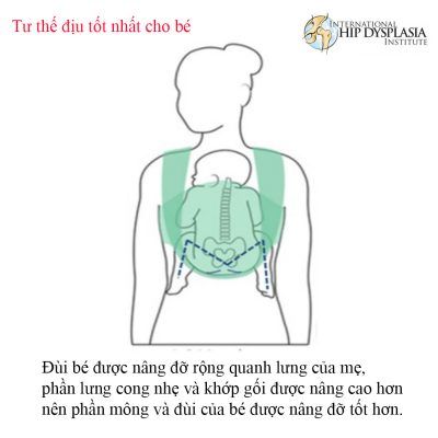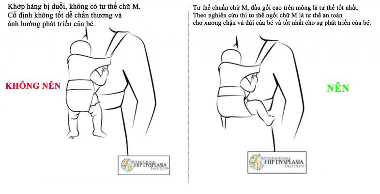 Theo khuyến nghị của Viện Loạn Sản Khớp Háng Quốc Tế (International Hip Dysplasia Institute) tư thế chữ M là tư thế địu tốt nhất cho bé