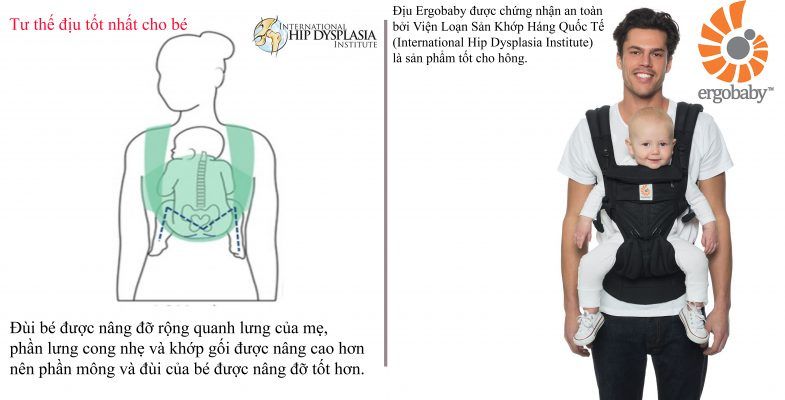 – Địu cho bé mọi tư thế Ergobaby được chứng nhận International Hip DysPlasia Institute (IHDI) – Hiệp hội lọan sản xương hông Quốc Tế là tổ chức Quốc Tế nghiên cứu để cải thiện sức khỏe và chất lượng cuộc sống của những người bị ảnh hưởng bởi chứng loạn sản xương hông.