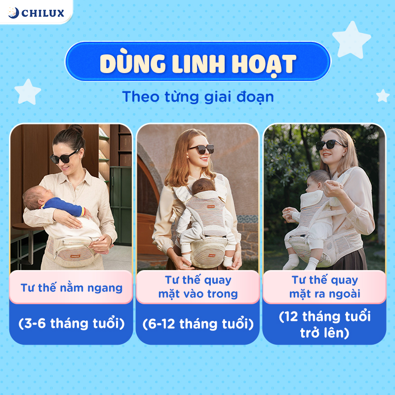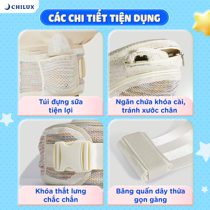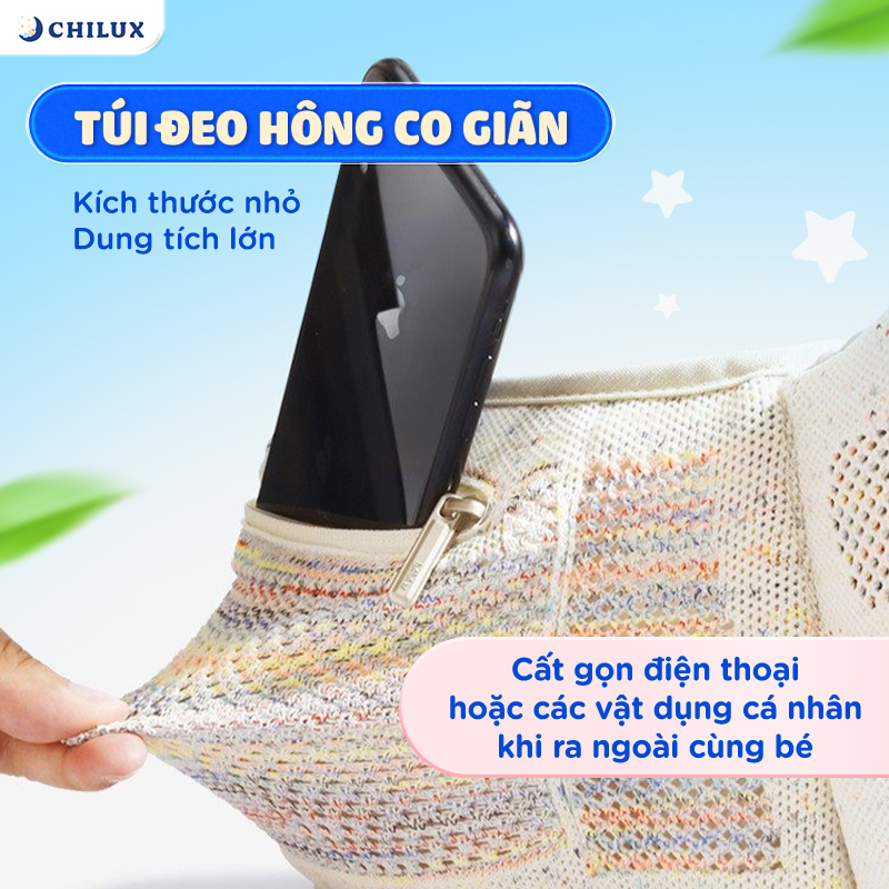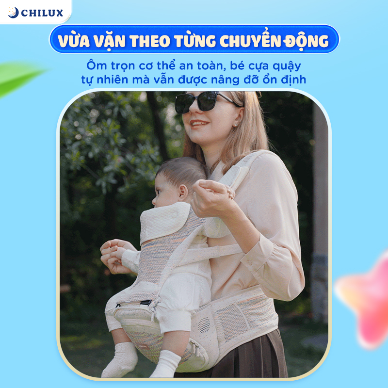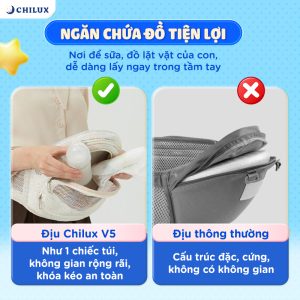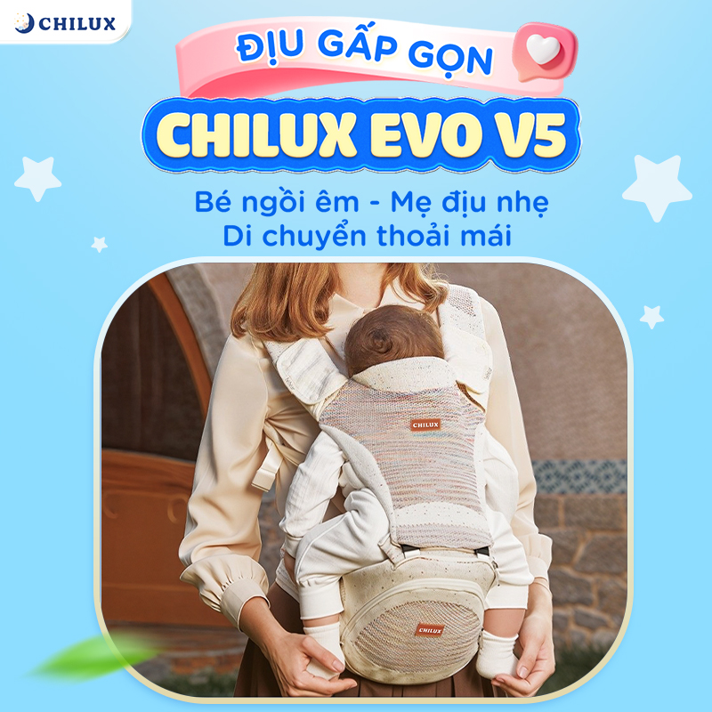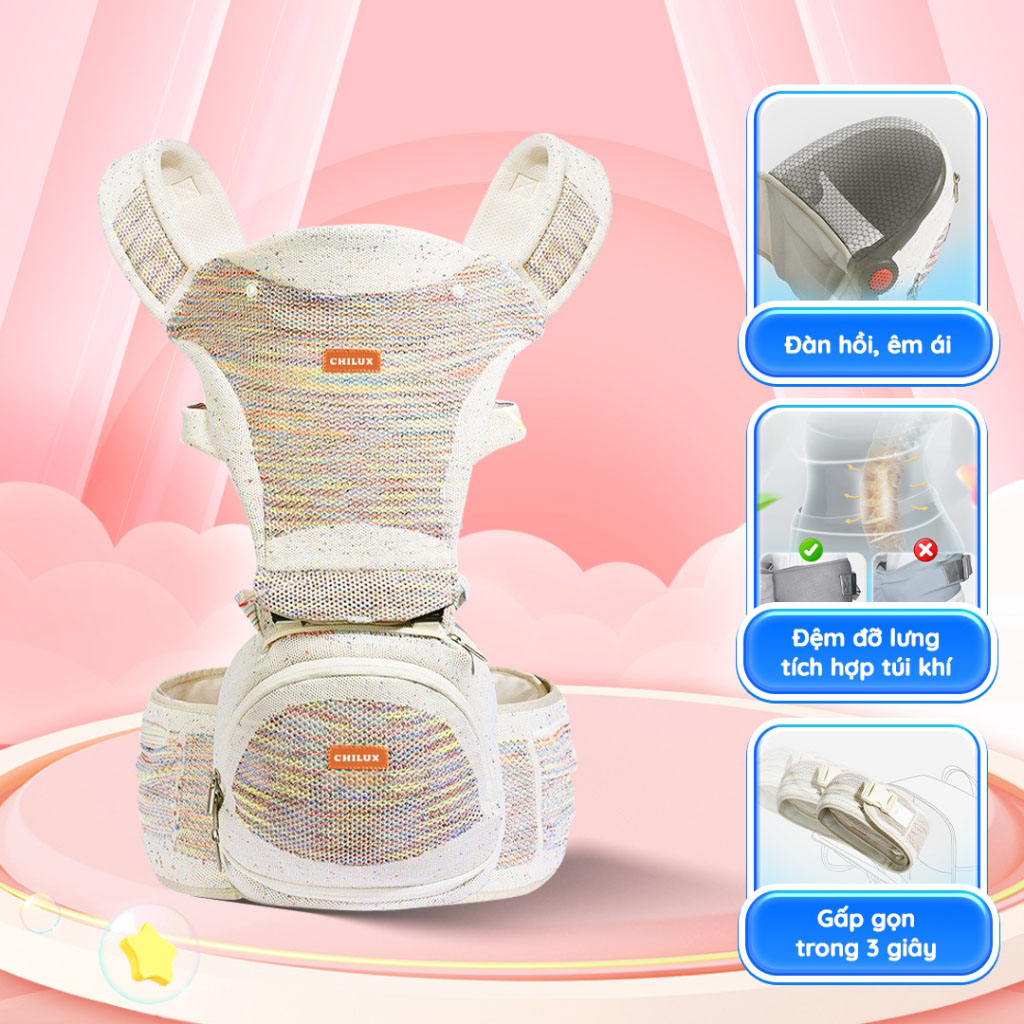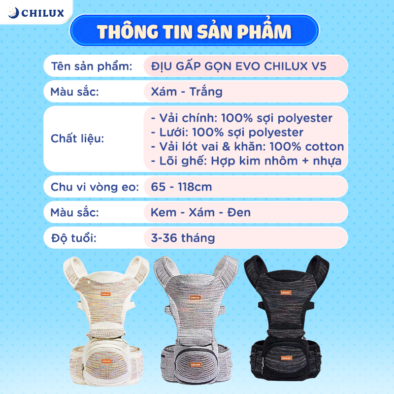 Địu gấp gọn Chilux EVO V5 - Đàn hồi êm ái, đệm đỡ lưng tích hợp túi khí, gấp gọn nhanh chóng