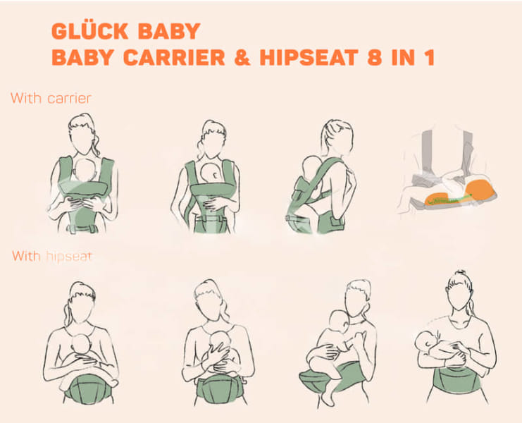 1. Chỉ 1 chiếc địu em bé với 8 tư thế địu bé khác nhau