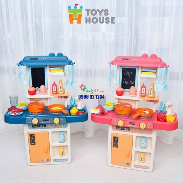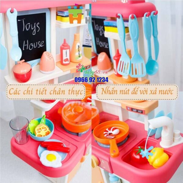 – Bộ đồ chơi đầy đủ các hiệu ứng nấu ăn như là bếp sôi, có âm thanh ánh sáng, hoa quả, trà để uống…