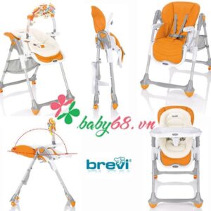 Ghế ăn cho bé có đồ chơi Brevi thiết kế chân ghế linh hoạt có thể nâng lên, hạ xuống ở 4 vị trí tương ứng với 4 độ cao tùy ý. Thêm vào đó, ghế có thể điều chỉnh độ nghiêng rất thoải mái, dễ chuyển từ ngồi sang nằm, phù hợp với từng giai đoạn lớn của bé yêu nhà bạn.