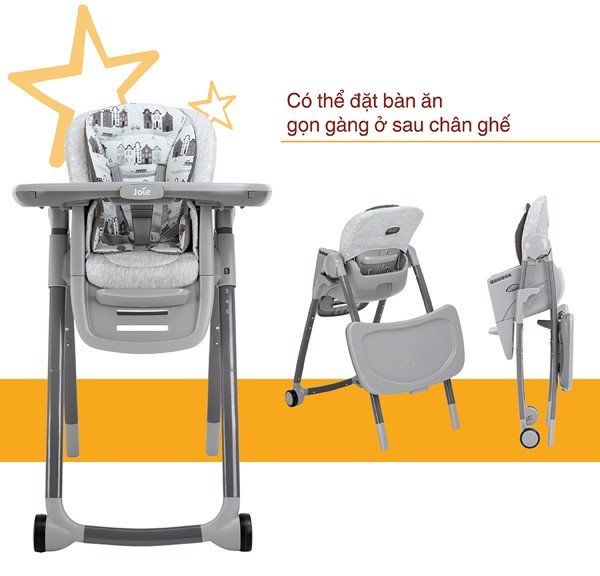 Giống như tất cả các loại ghế ăn khác của Joie, ghế ăn trẻ em Multiply 6in1 có khả năng dễ dàng gập gọn và tự đứng vững sau khi gấp lại. Ngoài ra, sau khi gập lại có thể đặt bàn ăn gọn gàng và độc đáo ở sau chân ghế.