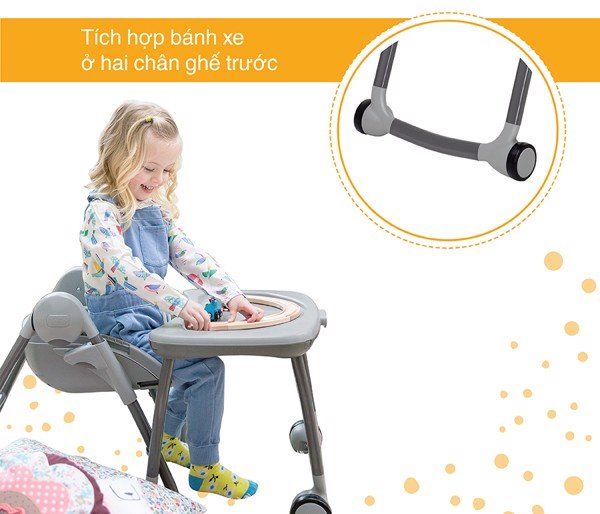 – Bàn ăn rộng rãi với 4 vị trí điều chỉnh phù hợp với trọng lượng cơ thể bé.