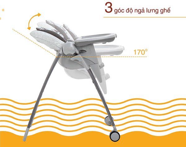 – 3 góc độ ngả lưng ghế cho bé sự thoải mái.