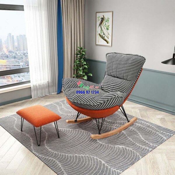 – Ghế thư giãn bập bênh kèm đôn để chân, khung sắt sơn tĩnh điện