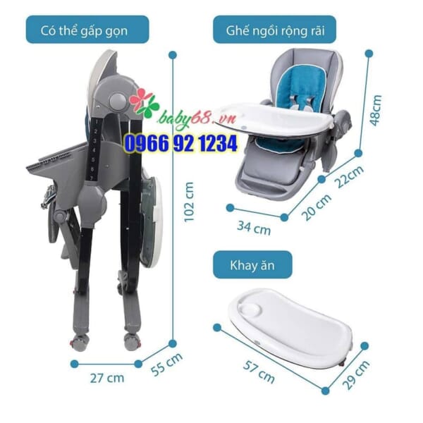 - Thiết kế độc đáo với khay ăn 2 lớp: Khay trên dùng cho bé ăn, có thể tháo rời để sử dụng khay dưới cho bé chơi.