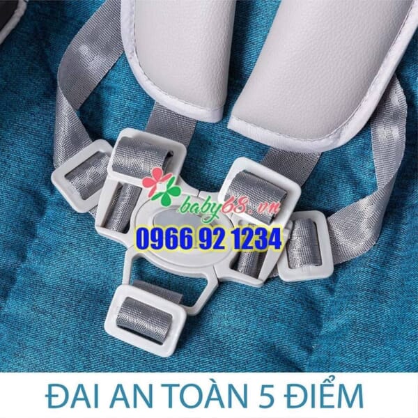 Đai an toàn 5 điểm cực kỳ an toàn cho bé. Mẹ yên tâm bé sẽ không bị ngã ngay cả khi bé với hay nhoài người ra ngoài.