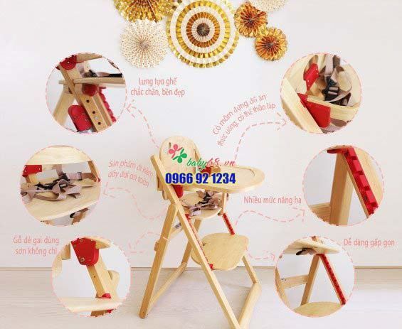 Ghế ăn bột/bàn – HC12: Chiều cao ghế vừa với bàn ăn, bé có thể ngồi ăn cùng với gia đình