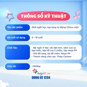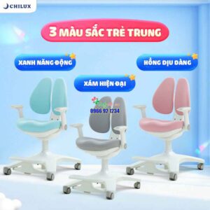Ghế ngồi học chống gù, đúng tư thế cho bé Chilux A22 bảo vệ cột sống, có thể thay đổi chiều cao