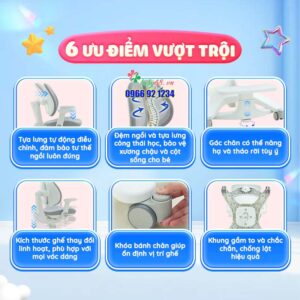 - Chức năng: chống gù, chống cận, tạo tư thế ngồi khoa học thẳng lưng