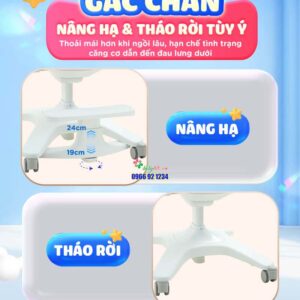 - Gác chân nâng hạ, tháo rời linh hoạt