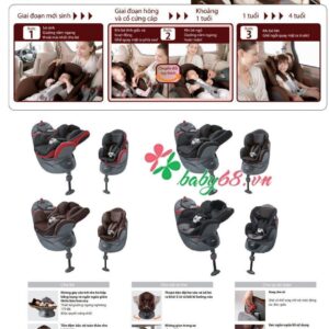 Hệ thống khóa đơn giản, lắp đặt dễ dàng. bảo vệ đầu, cổ, sự hô hấp và tư thế theo giai đoạn phát triển của bé. Van an toàn chỉ cho phép bố mẹ xoay ghế khi ở góc độ chính xác.