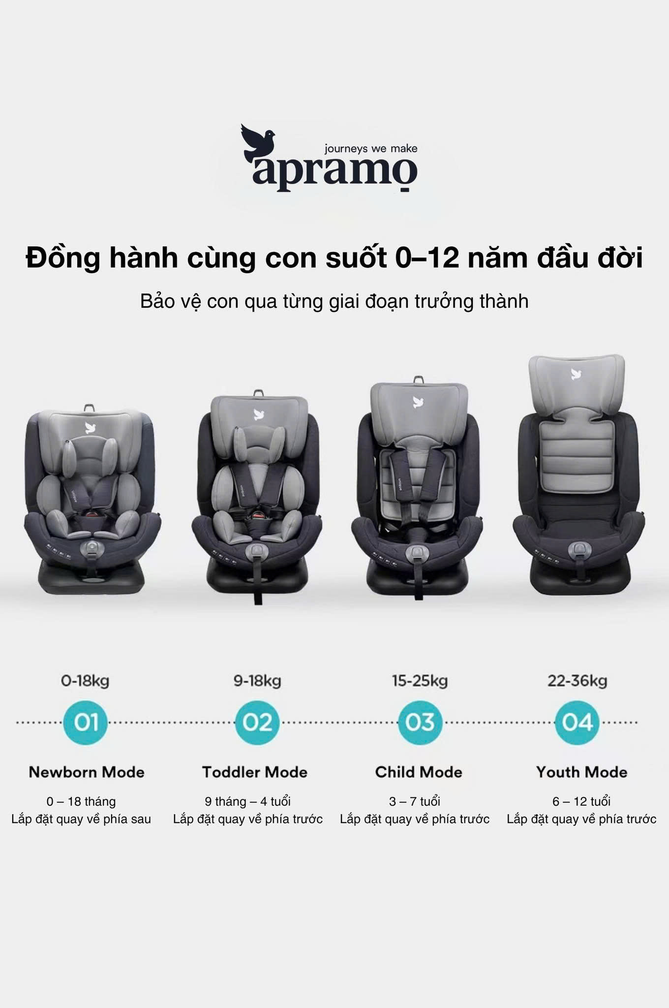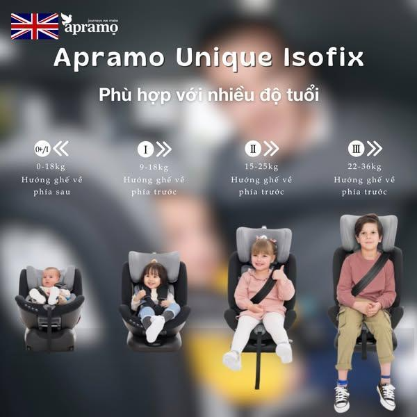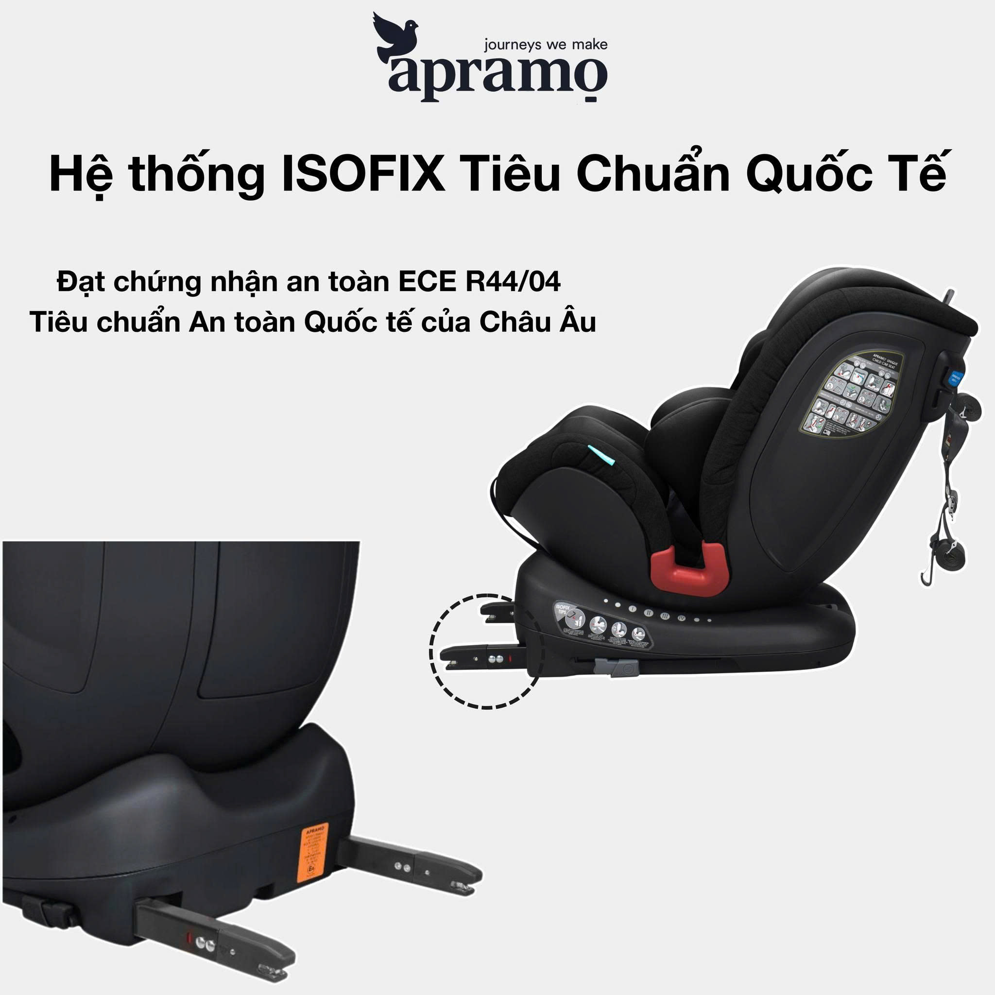 Ghế Ngồi Ô Tô Cao Cấp Apramo Unique 360 – Xoay 360°, Isofix, Sip, Đai 5 Điểm – Chính Hãng Anh Quốc!