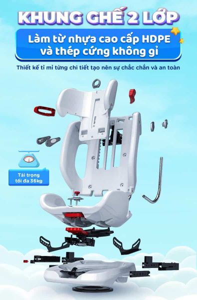 – Tải trọng lên đến 36 Kg: đồng hành cùng bé đến năm 12 tuổi