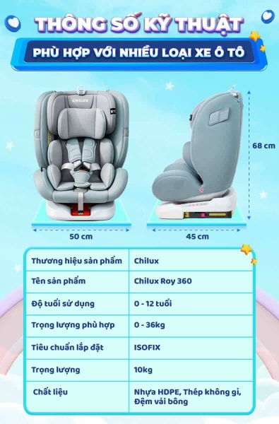 Ghế ngồi ô tô cho bé Chilux ROY 360 An toàn, tiện lợi cùng bé đồng hành trên mọi nẻo đường