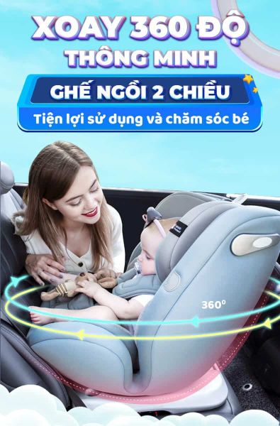 + Xoay 360 độ: ghế ngồi xuôi chiều xe cho bé khi lớn