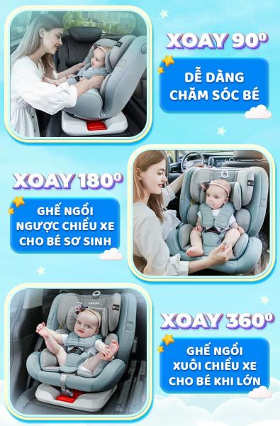 + Xoay 180 độ: ghế ngồi ngược chiều xe cho bé sơ sinh