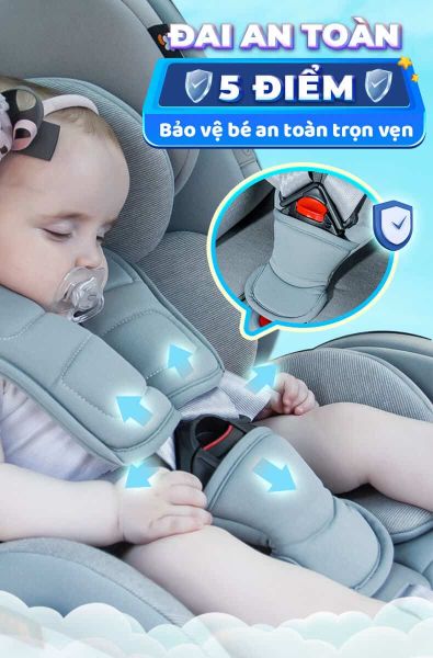+ ISOFIX + Dây an toàn vắt ngang người bé
