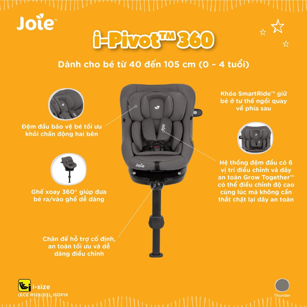 – Tên sản phẩm: Ghế ngồi ô tô trẻ em Joie i-Pivot 360 Thunder