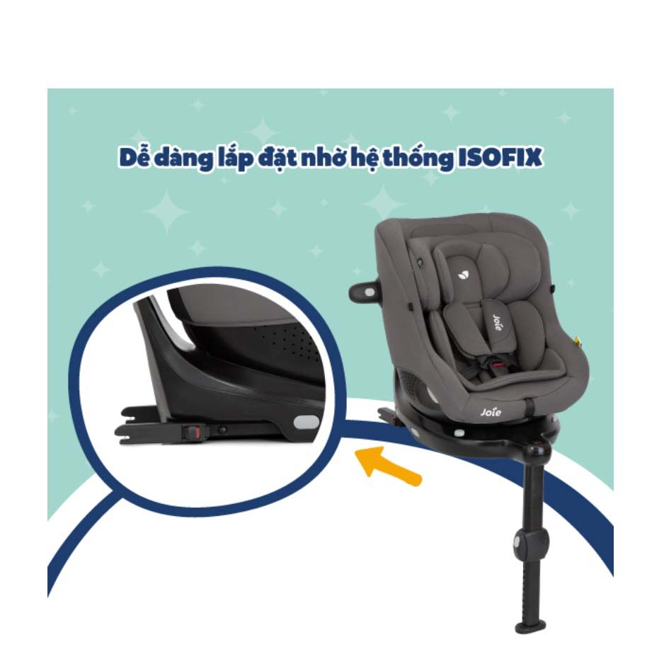 Ghế ngồi ô tô cho bé Joie i-Pivot 360 Thunder | Ghế ngồi ô tô trẻ em cao cấp xoay 360 kết nối isofix