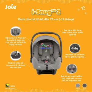 Ghế ngồi ô tô cho bé Joie i-Snug 2 gọn nhẹ | Ghế ngồi xe ô tô cho bé có quai xách, có thể dùng cho xe đẩy