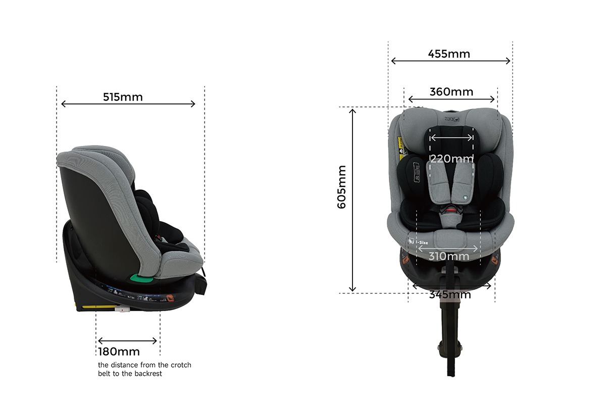 Đạt chuẩn i-Size – tiêu chuẩn hiện đại nhất của châu Âu dành cho ghế ô tô trẻ em.