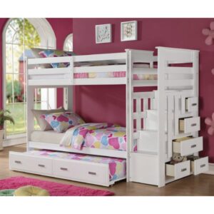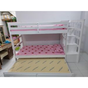 Giường ba tầng Acme BB 010 được thiết kế đẹp với các họa tiết trang trí. Thiết kế tối ưu để tiết kiệm diện tích phòng ngủ, sử dụng cho cả trẻ em và người lớn. Ưu điểm lớn của loại giường này là rộng rãi, dùng cho cả trẻ em và người lớn với 3 tầng, cầu thang có các hộc kéo dùng để chứa đồ, cầu thang chắc chắn.