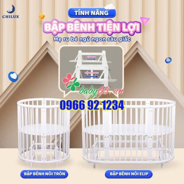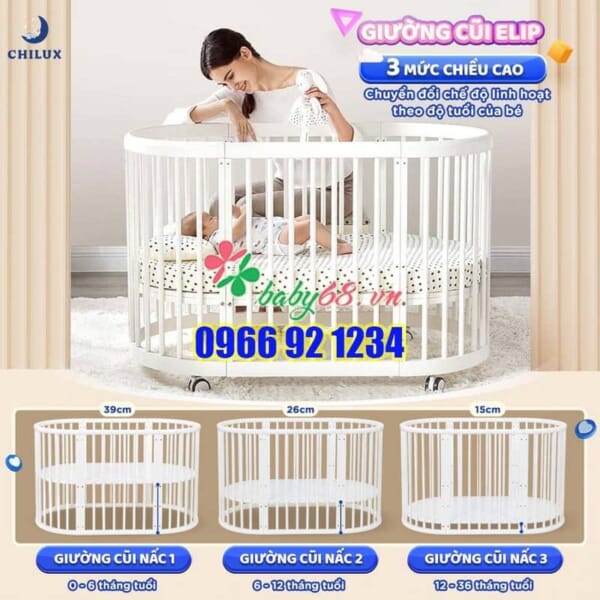 – Giường cũi nôi tròn đa năng Chilux với sự thiết kế phá cách hơn so với các loại nôi cũi truyền thống. Thiết kế vòng cung giúp bé thoải mái và an toàn như trong vòng tay của mẹ.
