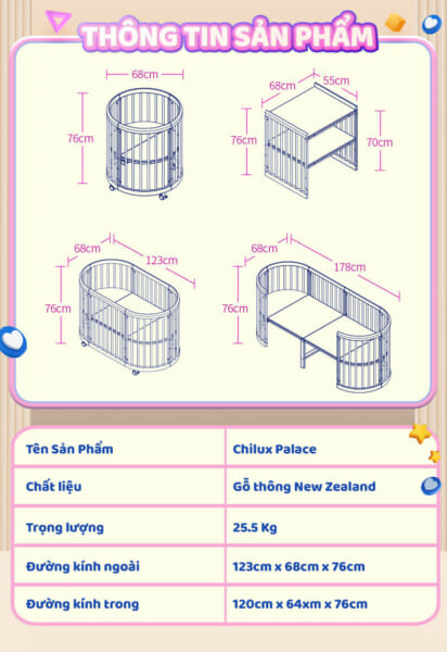 📌CHI TIẾT VỀ SẢN PHẨM NÔI CŨI GIƯỜNG TRÒN ĐA NĂNG PALACE CHILUX: