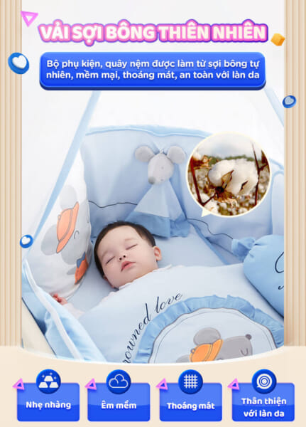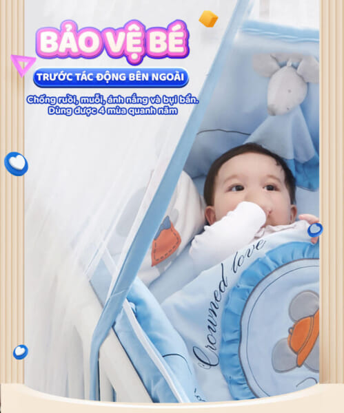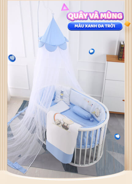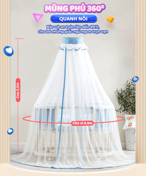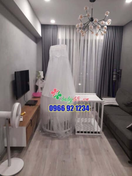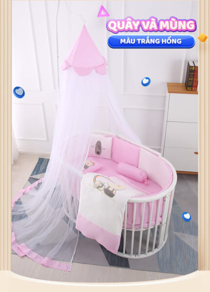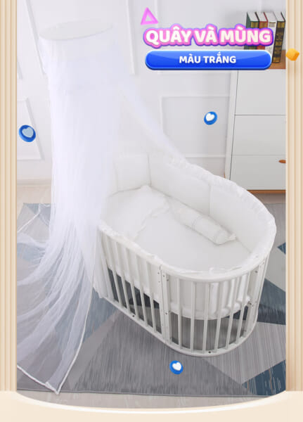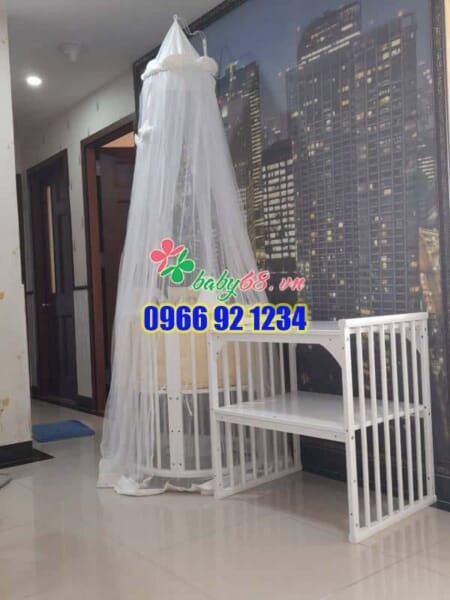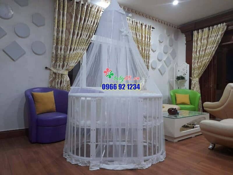 – Giường nôi tròn với màn che rất tiện dụng khi bé ngủ trong phòng sáng. Bạn có thể kéo màn kín lại để chắn ánh sáng, chống mũi sẽ giúp bé dễ ngủ và ngủ ngon giấc hơn