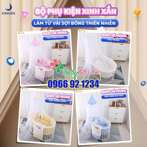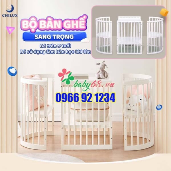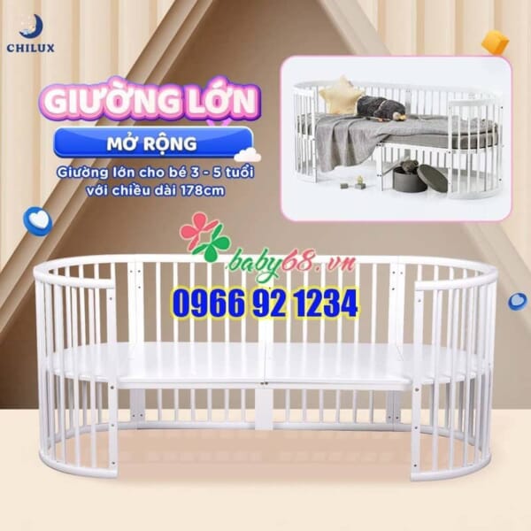 Giường cũi cao cấp Chilux Palace – Nôi tròn cho bé Chilux – Sang trọng và tính tế – 100% gỗ thông tự nhiên – Nước sơn an toàn cho bé