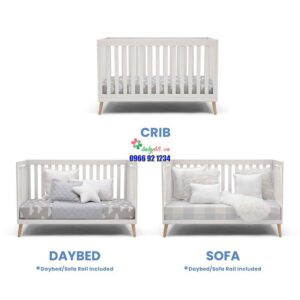 Giường cũi đa năng trẻ em Delta Children Grey, Biancan White/Nature kèm quà tặng
