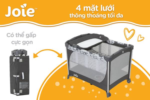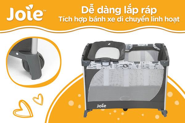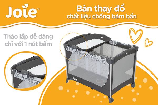 – Bàn thay đồ dễ dàng lắp vào hoặc tháo ra khỏi cũi với nút bấm tiện lợi nhờ hệ thống SecureClick™ của Joie