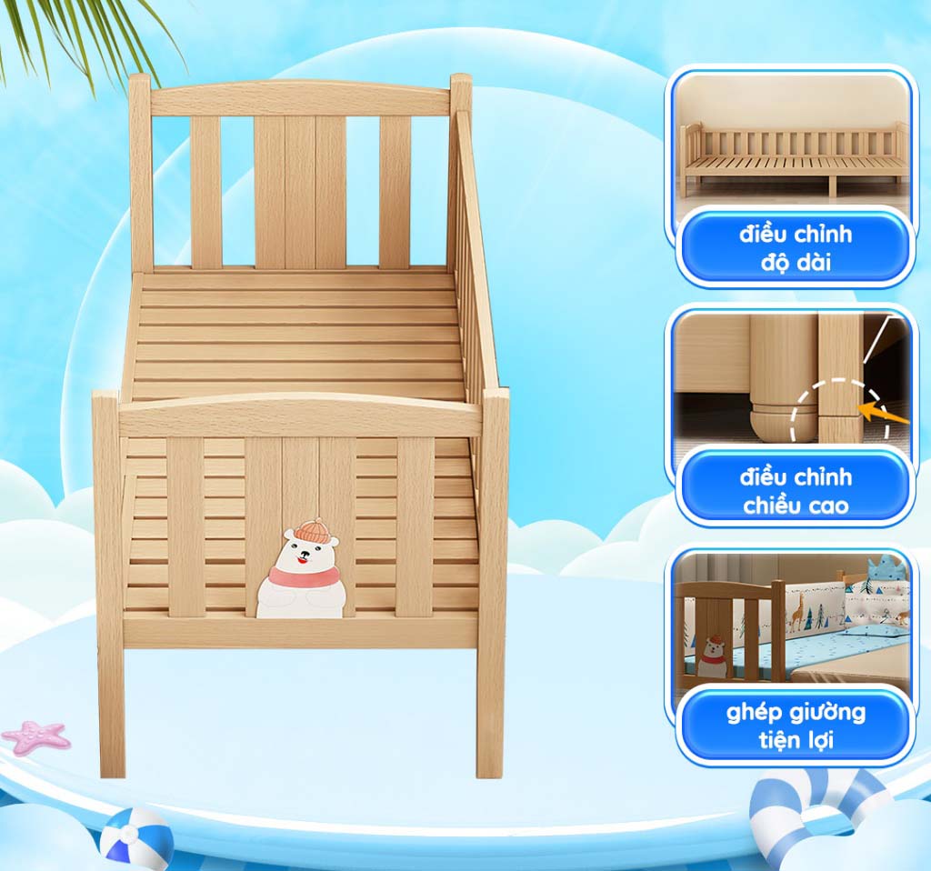 👉Chilux gợi ý cho mẹ một chiếc GIƯỜNG GỖ GHÉP ĐÔI có thể điều chỉnh độ dài, người bạn này sẽ giúp bé vừa có không gian ngủ thoải mái nhưng vẫn an toàn trong tầm mắt của ba mẹ.